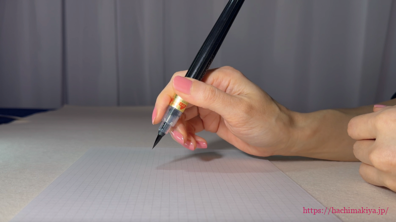 筆ペンを使い書の基本を教える